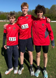 Gabriel bei der U23 DM (mit Matti und Lea und Trainer Norman)