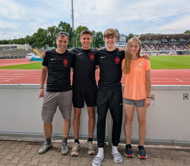 Gabriel bei der U23 DM (mit Matti und Lea und Trainer Norman)